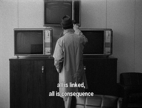 What do you mean by Fashion?” the interviewer asks the silly woman, thinking why can’t women just stay in their little places. She answers, "I mean the desire for dress to keep altering its basic look. To keep in that sense every year altering the way it looks, so there is a constant continuum of formal change is set in motion, [she gestures with fluidity, he tries to interrupt] that never resolves. He continues to interrupt with his silly little thoughts.