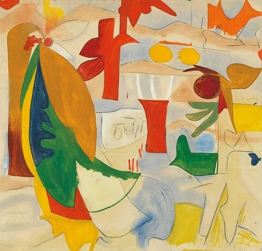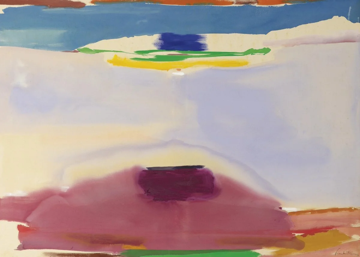 Helen Frankenthaler is one of the great artists of the 20th century. She moved a whole art form, leading the transition from Abstract Expressionism to Color Field painting. A New Yorker, her work spanned six decades across different mediums but always across expansive canvases. She used sponges, spilled paint, introduced new techniques of blending charcoal and oil on unprimed canvas, and developed a variation of a technique of soak-stain painting, where she poured thinned paint onto raw, unprimed canvas, which was splayed out on her studio floor. She worked with this almost watercolour consistency to create large meditative pools of translucent colour. Her ability to capture a moment without fear and take up physical space and her relationship and dialogue with colour, which feels intimate and innate, feels like being in the company of a bruising talent. It’s work I know I want to see in person, it can’t translate on a screen, but there’s enough to be in contact with — a gentle brush against a stranger that lingers, enough for now. The Frankenthaler Foundation offers a generous breakdown of her paintings online, works on paper, and prints by decade, allowing for a chronology of expression. Witnessing her changing conversation with colour, moving from a busier abstract to a singular more prayerful conversation evokes that feeling of being a young girl who has stayed up long past her bedtime, falling half asleep on the couch listening to dinner party conversations I can’t understand yet. I feel drawn lately to these artists who have had such a prolific career over many decades, their internal excavations, and a continued return to simplicity that required making large, much more entangled choices over a long period. In a letter to author and friend Sonya Rudikoff on September 23, 1990, she wrote, “ I think the older we get the longer it takes to rally, in many ways—and a different set of fears hangs over us.” I admire her sense of rallying in the face of fear, in defense of herself. A few years later in 1997, in conversations with Julia Brown, in New York and Connecticut, during the spring and into the fall of 1997 which appeared in the publication that documents the exhibition After Mountains and Sea: Frankenthaler 1956–1959, she mentions this sense of urgency, “All beautiful painting has a sense of necessity and urgency, as if it were imperative that the artist make this work, that it had to be born. The painting becomes a means of expressing one’s inner gift. It is a catharsis.” To be a woman open in her talent, a defender of beauty, which she was derided for by some critics who valued the sternness and masculinity of her peer Pollack over her more delicate works, and in contract with time that doesn't negotiate, is, to me, an influence that I want to soak in my own personal canvas.